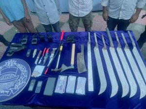 মীর জেসান হোসেন তৃপ্তী : ঢাকা জেলার সাভার উপজেলার আশুলিয়ায় অভিযান চালিয়ে বিপুল পরিমাণ দেশীয় অস্ত্রসহ কিশোর গ্যাংয়ের ৪ সদস্যকে গ্রেপ্তার করেছে যৌথ বাহিনী। পরে তাদের দেয়া তথ্যের ভিত্তেতে একটি বাড়ি থেকে দেশীয় অস্ত্র, চাইনিজ কুড়াল, স্টান গান, ওয়াকি টকি সেটসহ জাল টাকা ও দেহ ব্যবসার আলামত উদ্ধার করা হয়। গতকাল শুক্রবার রাত ১০ টার দিকে আশুলিয়ার জামগড়া মোড় এলাকা থেকে তাদেরকে গ্রেপ্তার করা হয়। গ্রেপ্তারকৃতরা হলো- খুলনা জেলার রূপসা থানার বাগমারা এলাকার আব্দুল রাজ্জাকের ছেলে রবিউল মুন্সি (৩৩), টাংগাইল জেলার গোপালপুর থানাধীন