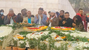 বলেন, সাবেক প্রধানমন্ত্রী মরহুমা বেগম খালেদা জিয়া বাংলাদেশের মানুষের কাছে দৃষ্টান্তের স্থাপন করেছেন। পৃথিবী যতদিন থাকবে তাকে মনে রাখবে। এ সময় আরো উপস্থিত ছিলেন, সংগঠনের যুগ্ম সম্পাদক ওবায়দুল ইসলাম, দক্ষিণ অঞ্চল সাংবাদিক ইউনিয়নের উপদেষ্টা আব্দুল মান্নান ভূঁইয়া। তিনি বলেন, আমার সংগঠনের পক্ষ থেকে তাহের রুহের মাগফিরাত কামনা করছি। সাবেক প্রধান মন্ত্রী বেগম খালেদা জিয়া দেশের জন্য নিজের জীবন বাজী রেখে যে সংগ্রাম করেছেন তা এ জাতি কখনো ভুলবে না। এ সময় বক্তব্য রাখেন বাংলাদেশ জাতীয় সাংবাদিক ফোরাম ও বাংলাদেশ ভূমিহীন ও গৃহহীন হাউজিং লিমিটেডের সাধারণ সম্পাদক মোঃ আজহার আলী, তিনি বলেন, মরুহুমা বেগম খালেদা জিয়া সব সময় দরিদ্র মানুষের কথা ভাবতেন। তার অকাল মৃত্যুতে আমরা শোকাহত। এ সময় উপস্থিত ছিলেন অধিকার ডেভেলপমেন্ট সোসাইটি ঢাকা জেলা শাখার সহ-সভাপতি মোঃ ইউনুস আলী, বাংলাদেশ ন্যাশনাল নিউজ ক্লাবের সাংবাদিক জাহাঙ্গীর আলম রাজু,বাংলাদেশ সেন্ট্রাল প্রেস ক্লাবের সহ-সভাপতি মোঃ শফিকুর রহমান, এ এম নওশাদ এহসান, কোহিনুর বেগম, মোঃ রফিকুল ইসলাম,আব্দুল আজিজ, আলমগীর হোসেন, মোঃ আব্দুর রহমান,মাহমুদা আক্তার, সেলিনা আক্তার,শিল্পী বেগম, মোঃ রঞ্জু, টিপুসহ বিভিন্ন সাংবাদিক ও সংগঠনের নেতৃবৃন্দ। শ্রদ্ধা নিবেদন শেষে সংক্ষিপ্ত বক্তব্যে নেতৃবৃন্দ আরো বলেন, বেগম খালেদা জিয়ার মৃত্যুতে দেশের রাজনীতি ও গণতন্ত্র যে ক্ষতির মুখে পড়েছে, তা অপূরণীয়। তিনি নিজের জীবনকে ঝুঁকির মুখে ফেলে গণতন্ত্র রক্ষা ও মানুষের জন্য কাজ করেছেন। তার দেখানো পথে তার উত্তরসূরিরা অবশ্যই চলবে । তার রাজনৈতিক প্রজ্ঞা, সাহস ও ত্যাগ জাতি চিরদিন শ্রদ্ধার সঙ্গে স্মরণ করবে।পরিশেষে শহীদ রাষ্ট্রপতি জিয়াউর রহমান ও মরহুমা বেগম খালেদা জিয়ার রুহের মাগফিরাত কামনা করে বিশেষ দোয়া ও মোনাজাতের মাধ্যমে কর্মসূচির সমাপ্তি ঘটে।