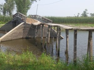 আর এই কাঁচা সড়কের ওপর ত্রাণের টাকায় ২০১৭ সালে নির্মাণ হয় সেতু। সে সময় বন্যার পানিতে সেতুটি হেলে পড়লে চলাচলের অযোগ্য হয়ে পড়ে। সড়ক ও সেতুটি চলাচল উপযোগী করতে এলাকাবাসীর সাহায্য সহযোগিতায় বালুর বস্তা ফেলে ও বাঁশ ও কাঠ দিয়ে সেতু নির্মাণ করা হয়। সেই বালুর বস্তাও গতবারের বন্যায় নষ্ট হয়ে সেতুটি চলাচলের অনুপযোগী হয়ে পড়ে। তাই বিকল্প পথে চলাচল করতে হচ্ছে। তারা বলেন,বর্তমান বাঁশ ও কাঠের সাঁকোটিও নেই। তারা বর্ষা ও শুষ্ক মৌসুমে বিকল্প পথে দুই কিলোমিটার ঘুরে চলাচল করেন। এই এলাকায় প্রায় ১০ হাজার লোকের বসবাস। এতে সময় ও অর্থের অপচয় হচ্ছে প্রচুর। বিশেষ করে বর্ষা এলেই উপজেলা শহরের সঙ্গে যোগাযোগ বিছিন্ন হয়ে পড়ে।তাই এখানে একটি ব্রীজ নির্মান করার দাবী জানান ভুক্তভোগীরা। স্থানীয় সাবেক ইউপি চেয়ারম্যান সাইফুল ইসলাম মুকুল জানান, আমি যখন দায়িত্বে ছিলাম সেতুটি হেলে পড়ার দিনই তৎকালীন উপজেলা নির্বাহী কর্মকর্তা রাশেদুল হক প্রধান ও প্রকৌশলী হারুন অর রশীদকে জানানো হয়েছিল। সেই সময় তারা ঊর্ধ্বতন কর্তৃপক্ষকে জানানো সহ দ্রুত পদক্ষেপ নেওয়ার আশ্বাস দিয়েছিলেন। কিন্তু আট বছর হয়ে গেলেও সংস্কার সহ মেরামতের কোনও উদ্যোগ নেওয়া হয়নি। জলঢাকা উপজেলা প্রকল্প বাস্তবায়ন কর্মকর্তা বলেন, ২০১৫-১৬ অর্থবছরে ত্রাণের ১২ লাখ টাকায় সেতুটি নির্মাণ কাজ শুরু হয়। সেতু চালু হয় ২০১৭ সালের মে মাসে। সেই সময় বন্যার পানিতে সেতুটি ক্ষতিগ্রস্ত হওয়ায় ঊর্ধ্বতন কর্মকর্তাকে জানানো হয়েছিল। তবে এর কোনও প্রতিকার পাওয়া যায়নি।