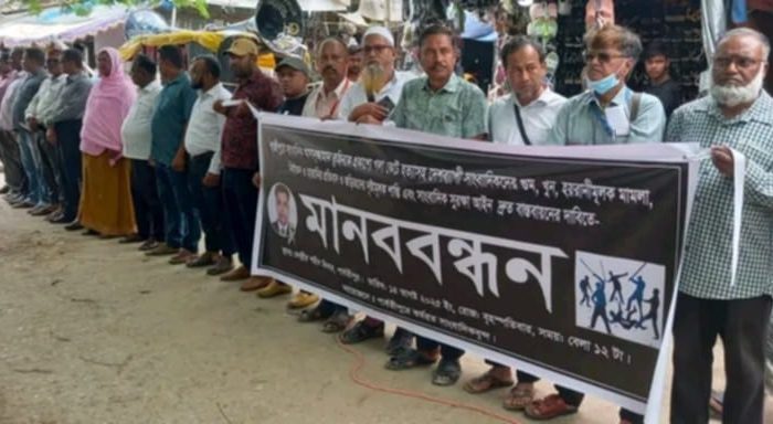 পার্বতীপুরে সাংবাদিক তুহিন হত্যার বিচারের দাবীতে মানববন্ধন