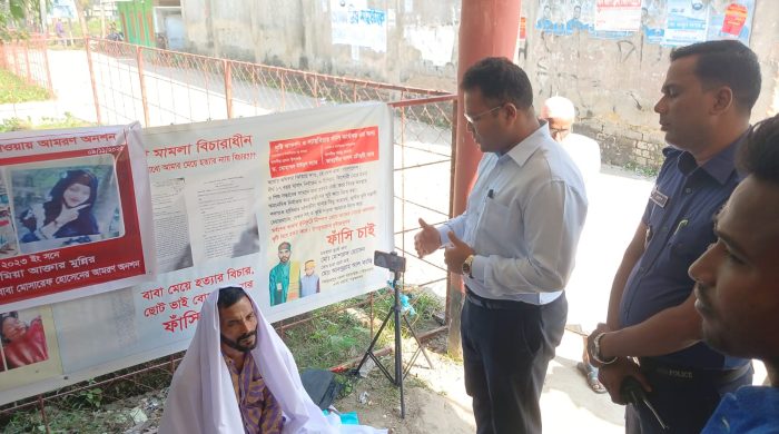 মঠবাড়িয়ায় মেয়ে হত্যার বিচারের দাবিতে আমরণ অনশন