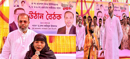 বাগেরহাটের রামপালে নারীদের উঠান বৈঠক; ধানের শীষে ভোট দেওয়ার আহ্বান