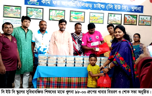 সি ইউ সি স্কুলের সুবিধাবঞ্চিত শিশুদের মাঝে খাবার বিতরণ ও শোক সভা অনুষ্ঠিত