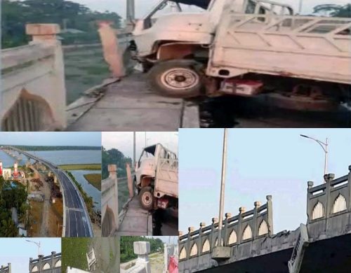 পিকআপ ভ্যানের ধাক্কায় বেকুটিয়া সেতুর রেলিং ভেঙে নিচে
