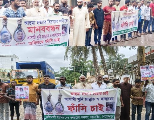 পিরোজপুরে আসমা বেগম হত্যা: দোষীদের ফাঁসির দাবিতে মানববন্ধন